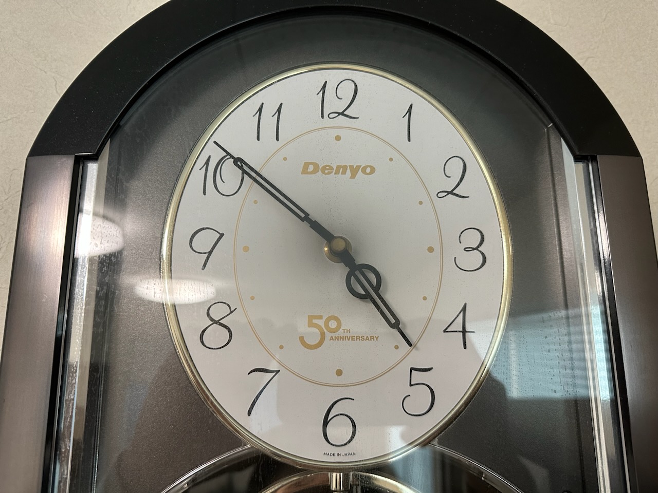 弊社の応接にある時計は25年前にデンヨー50周年記念でいただいた時計ですが現在も活躍してます。