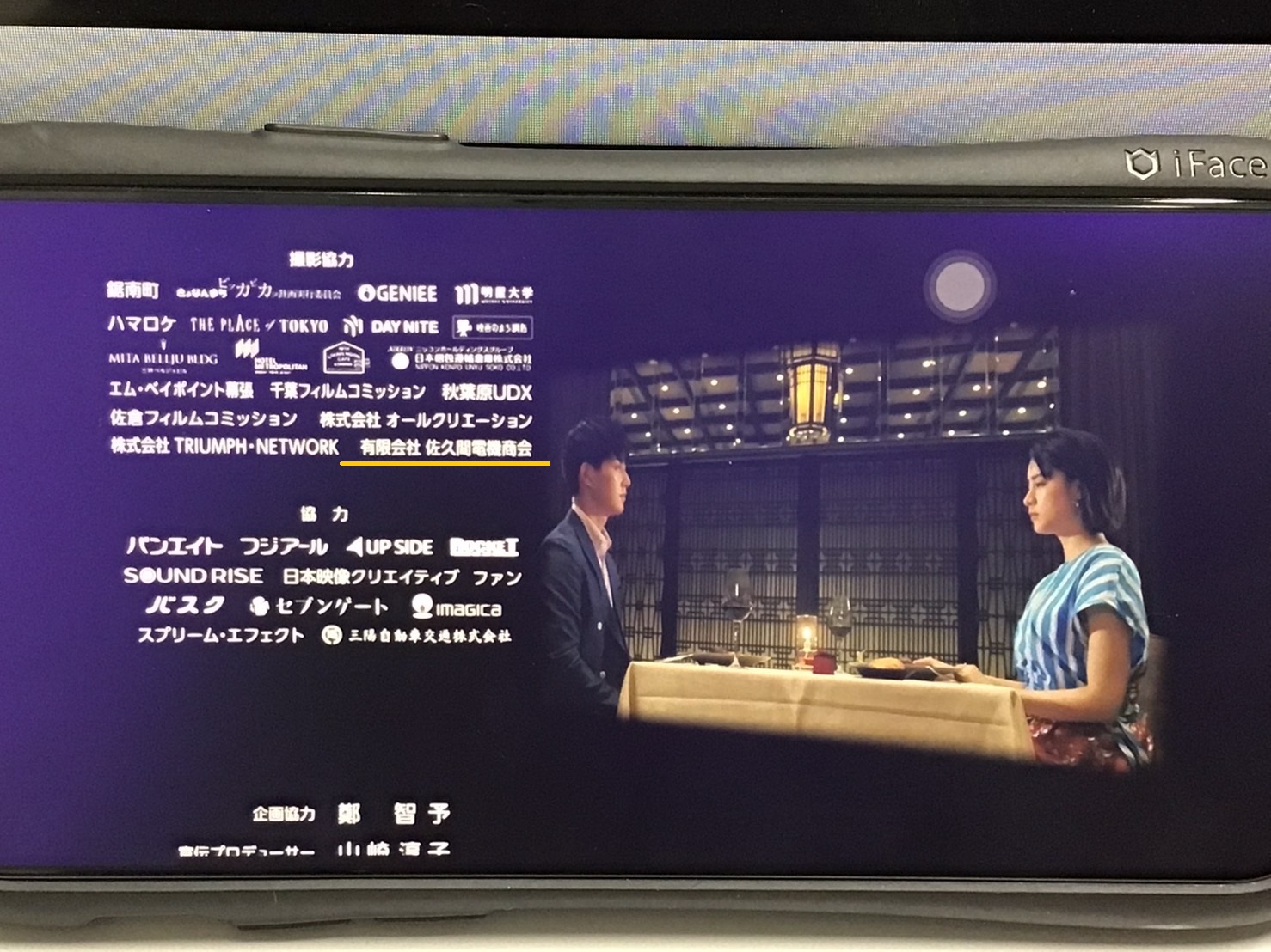 担当者のご厚意で撮影協力の欄に会社名を載せていただきました。