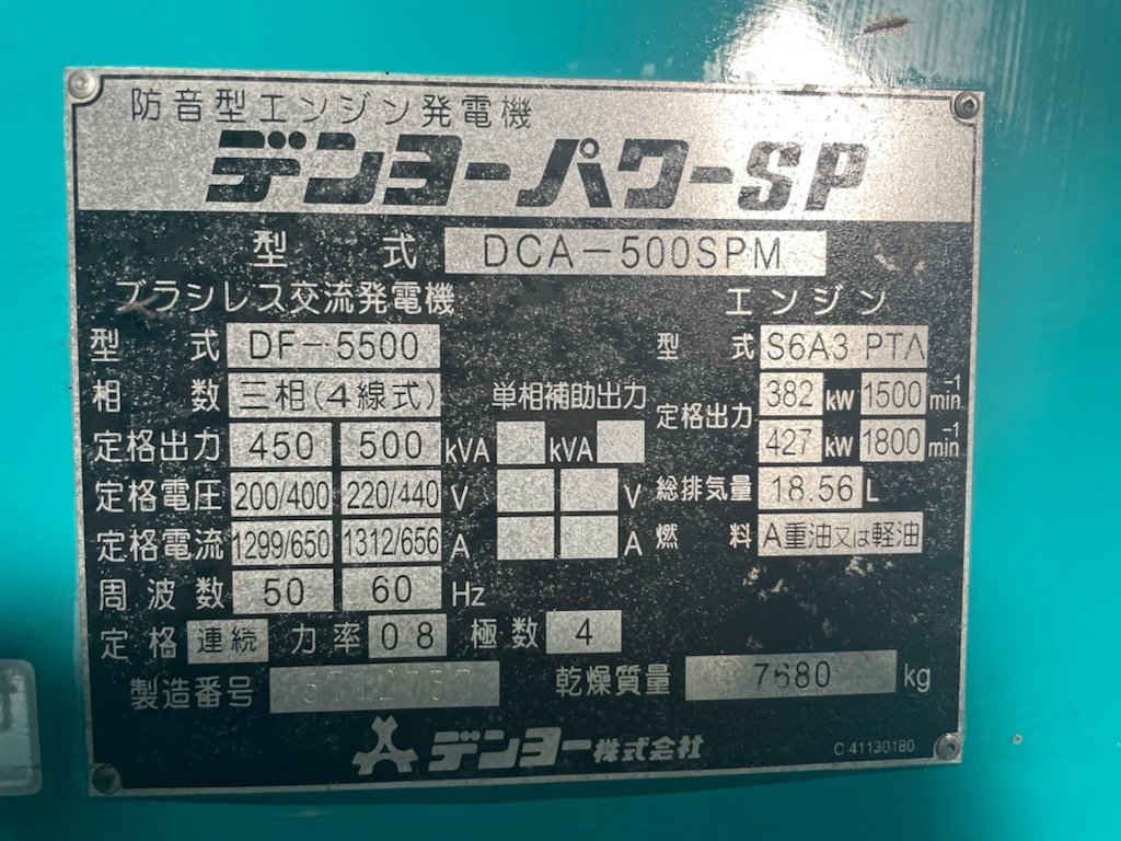 中古発電機 DCA-500SPM #46