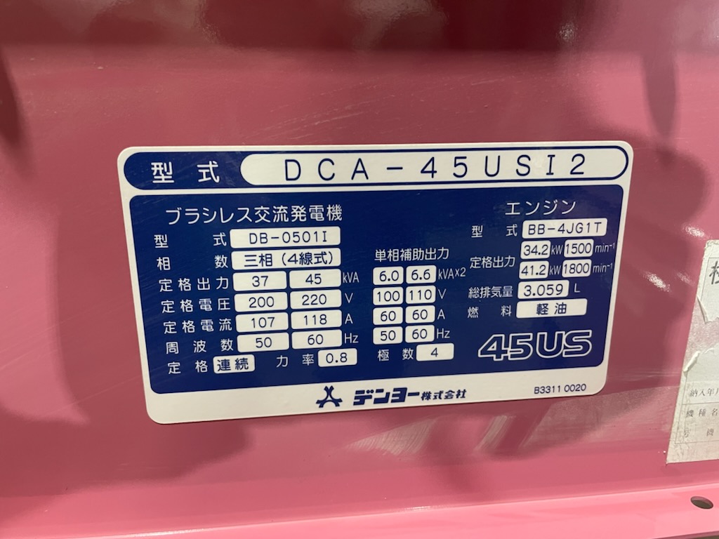 中古発電機 DCA-45USI2 #048