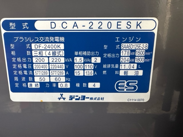 中古発電機 DCA-220ESK #59