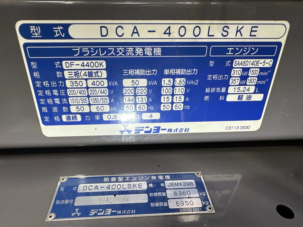 中古発電機 DCA-400LSKE #063