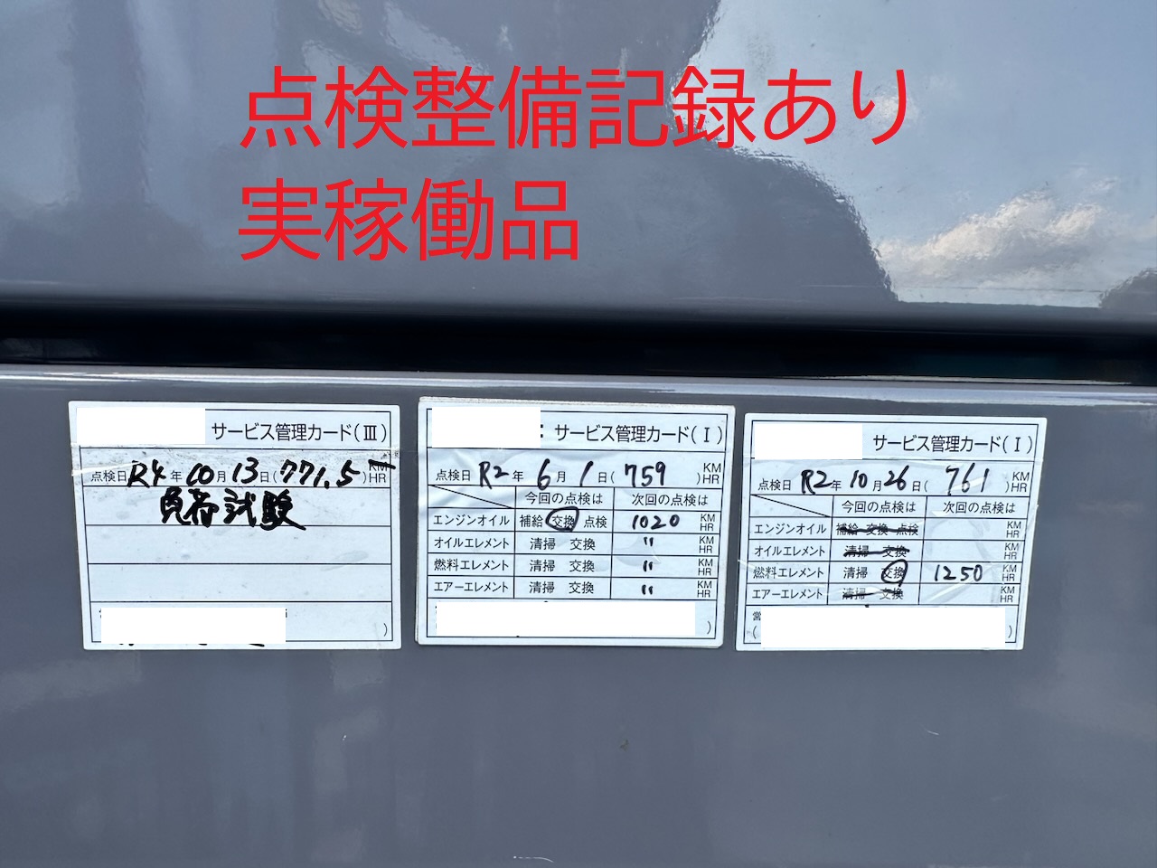運転時間の表記は現在のアワーメーターに表示されている時間であり実働を保証するものではありません。