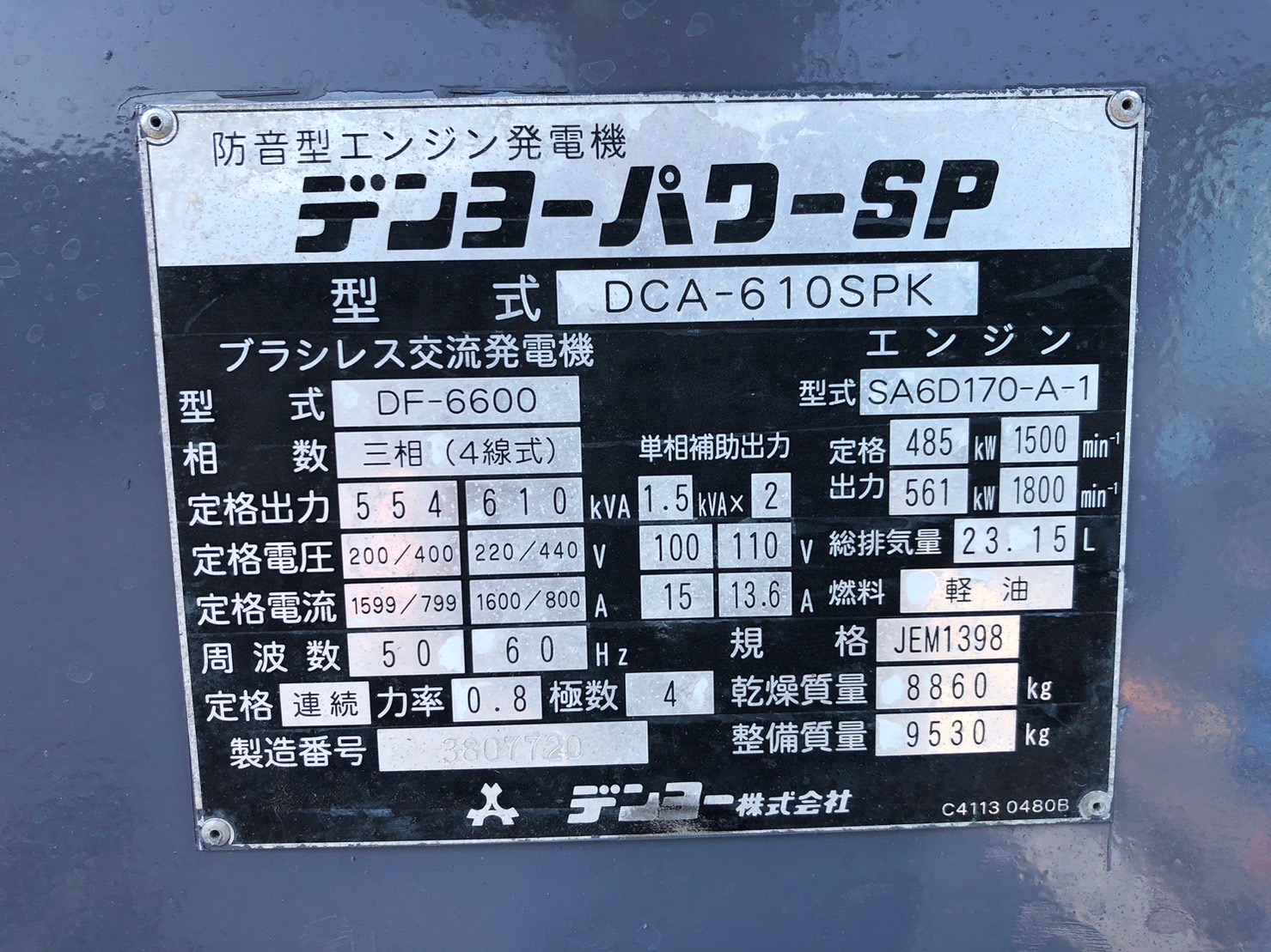 中古発電機 DCA-610SPK #072