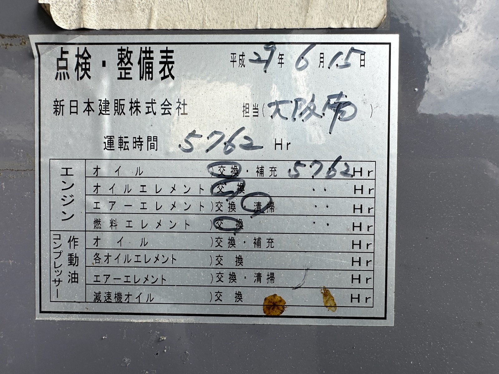 運転時間の表記は現在のアワーメーターに表示されている時間であり実働を保証するものではありません。