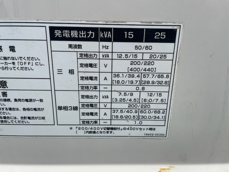 運転時間の表記は現在のアワーメーターに表示されている時間であり実働を保証するものではありません。