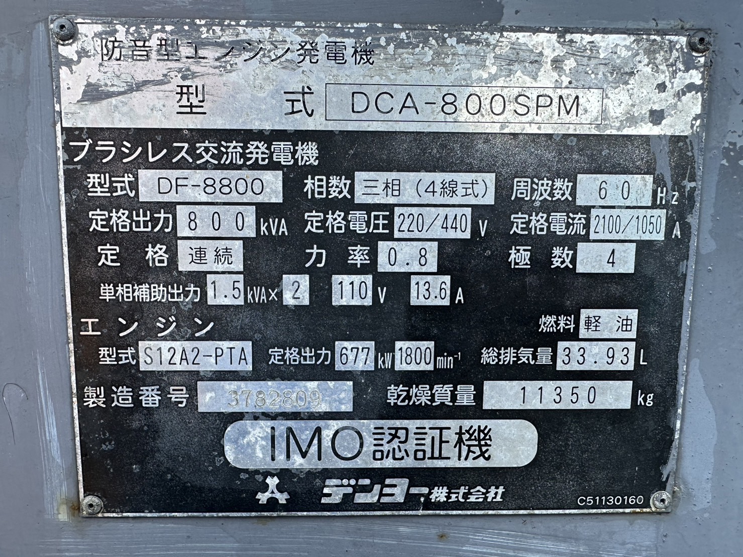 中古発電機 DCA-800SPM #79
