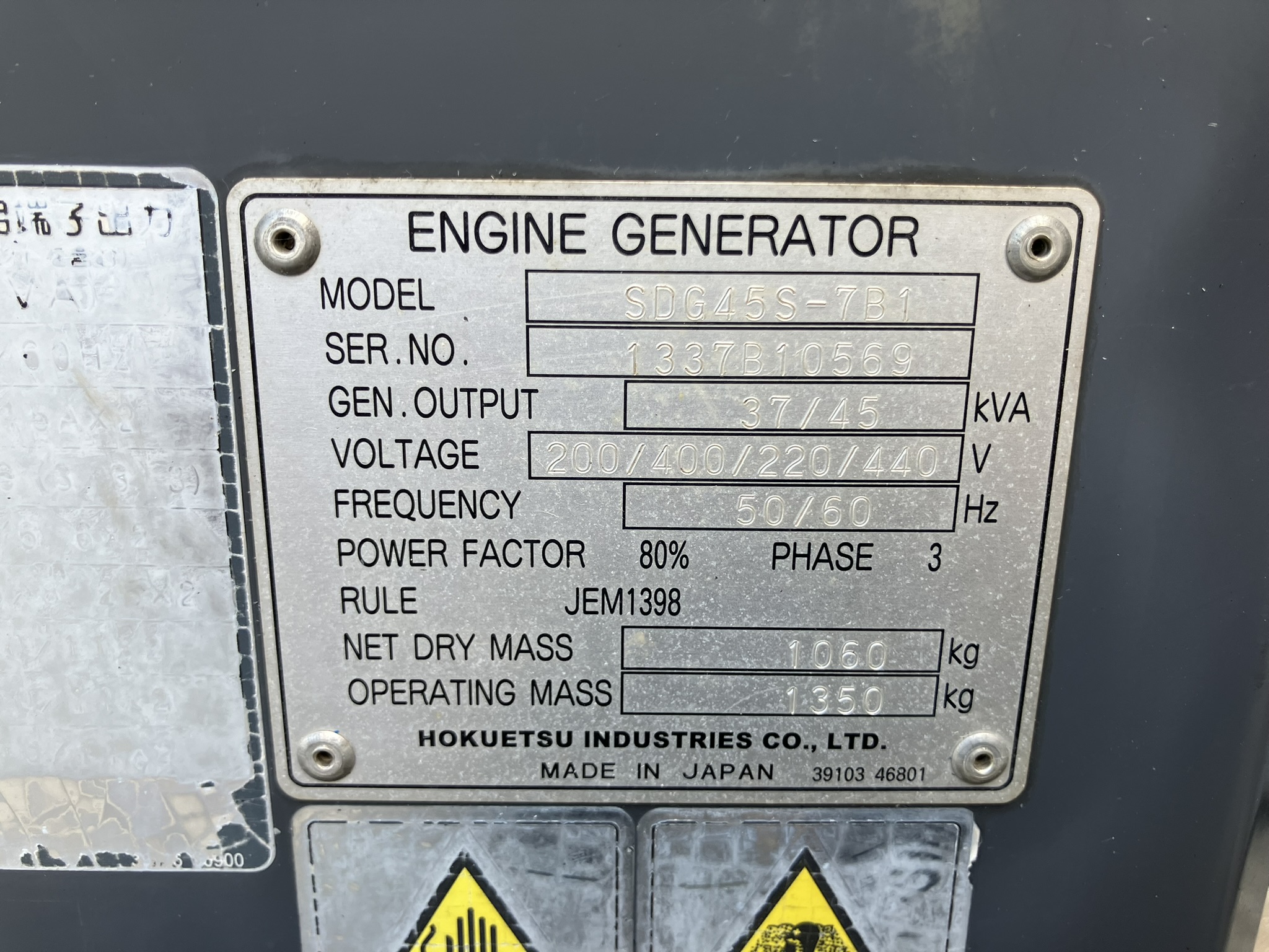 中古発電機 SDG45S-7B1 #120