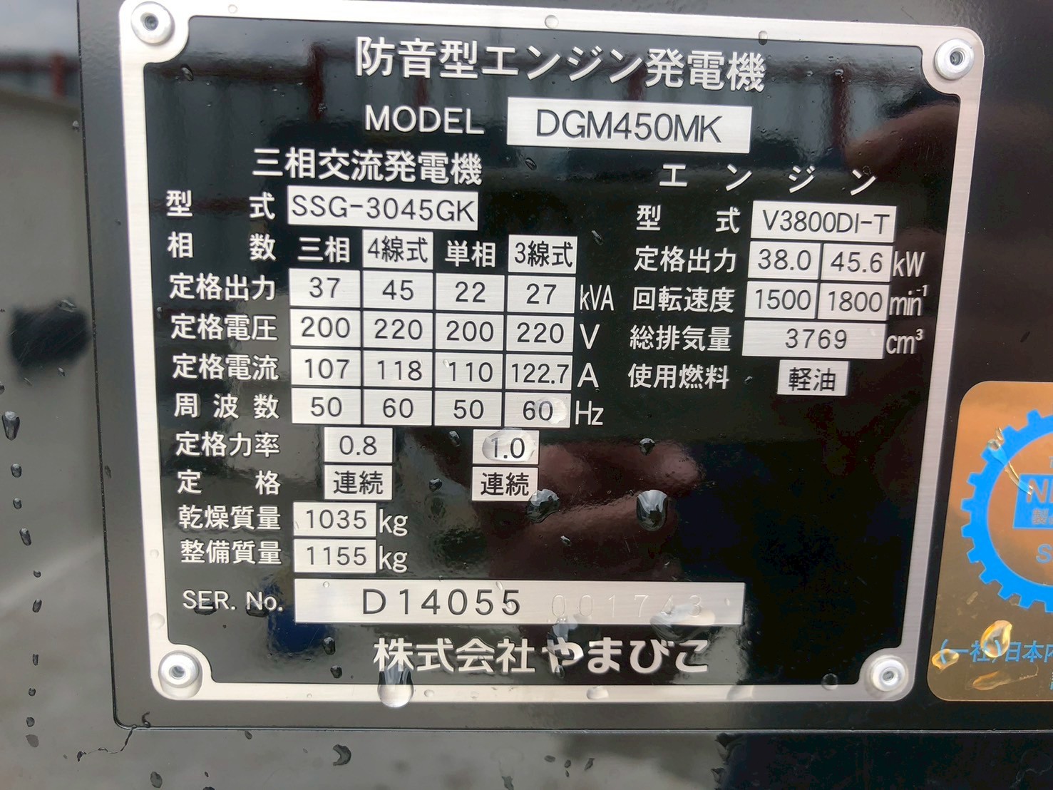 中古発電機 DGM450MK #124