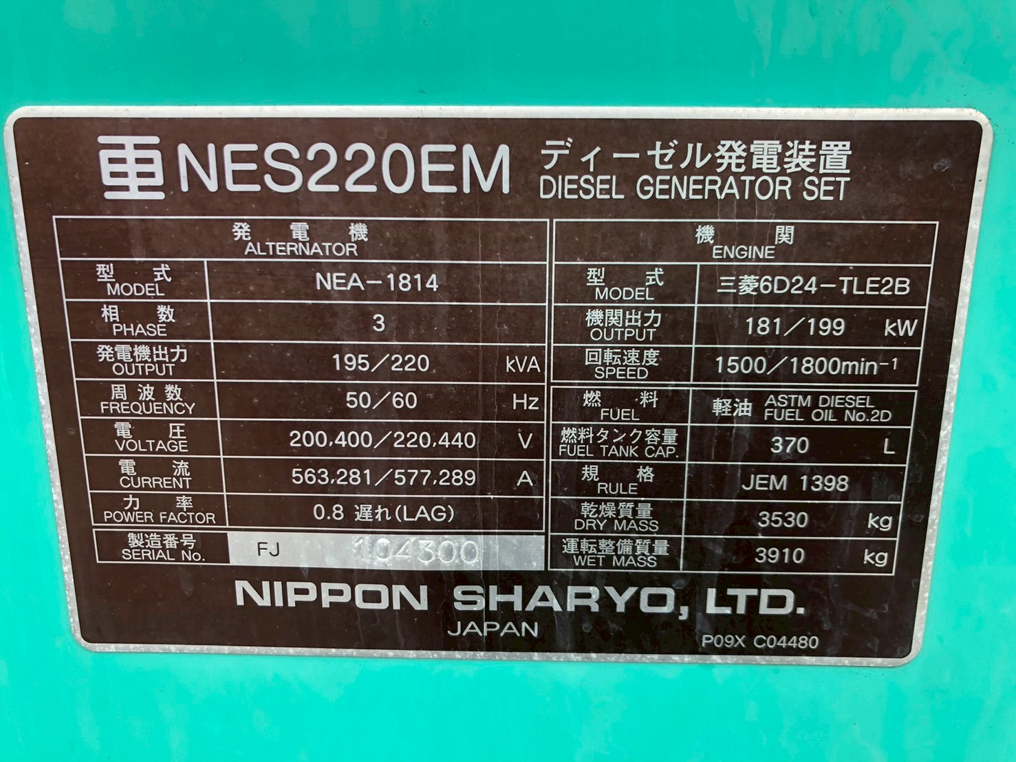 中古発電機 NES220EM #128