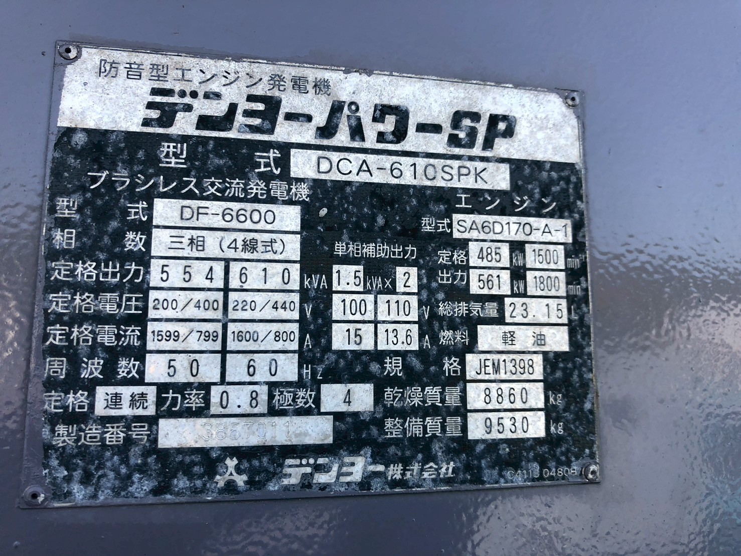 中古発電機 DCA-610SPK #144