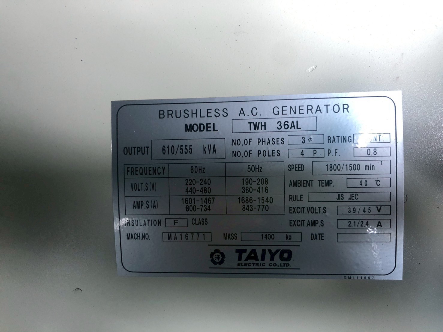 未使用品発電機 SDG610S-3AK6 #155