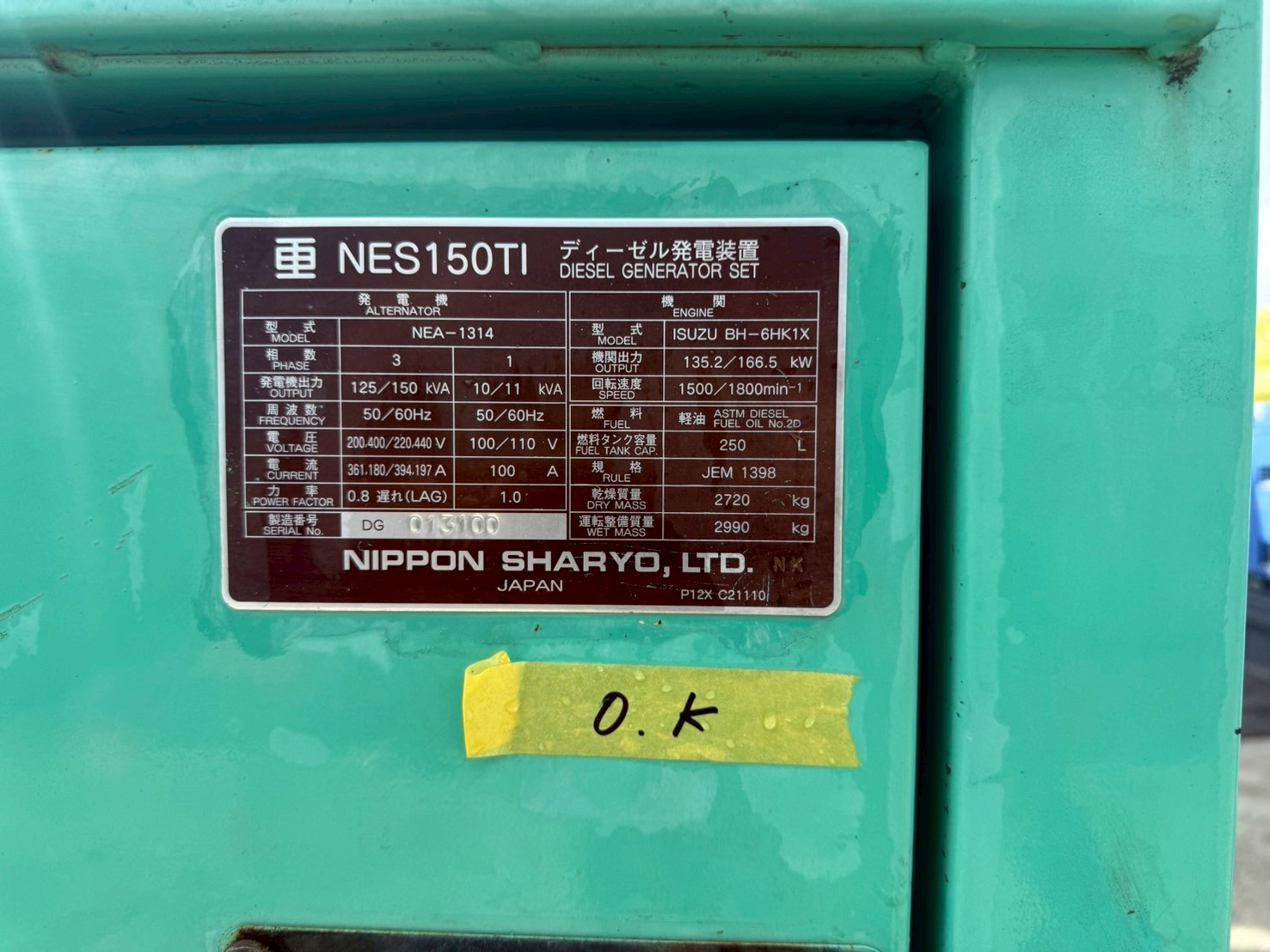中古発電機 NES150TI #164