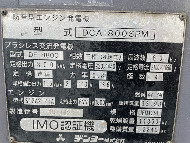 中古発電機 DCA-800SPM #022