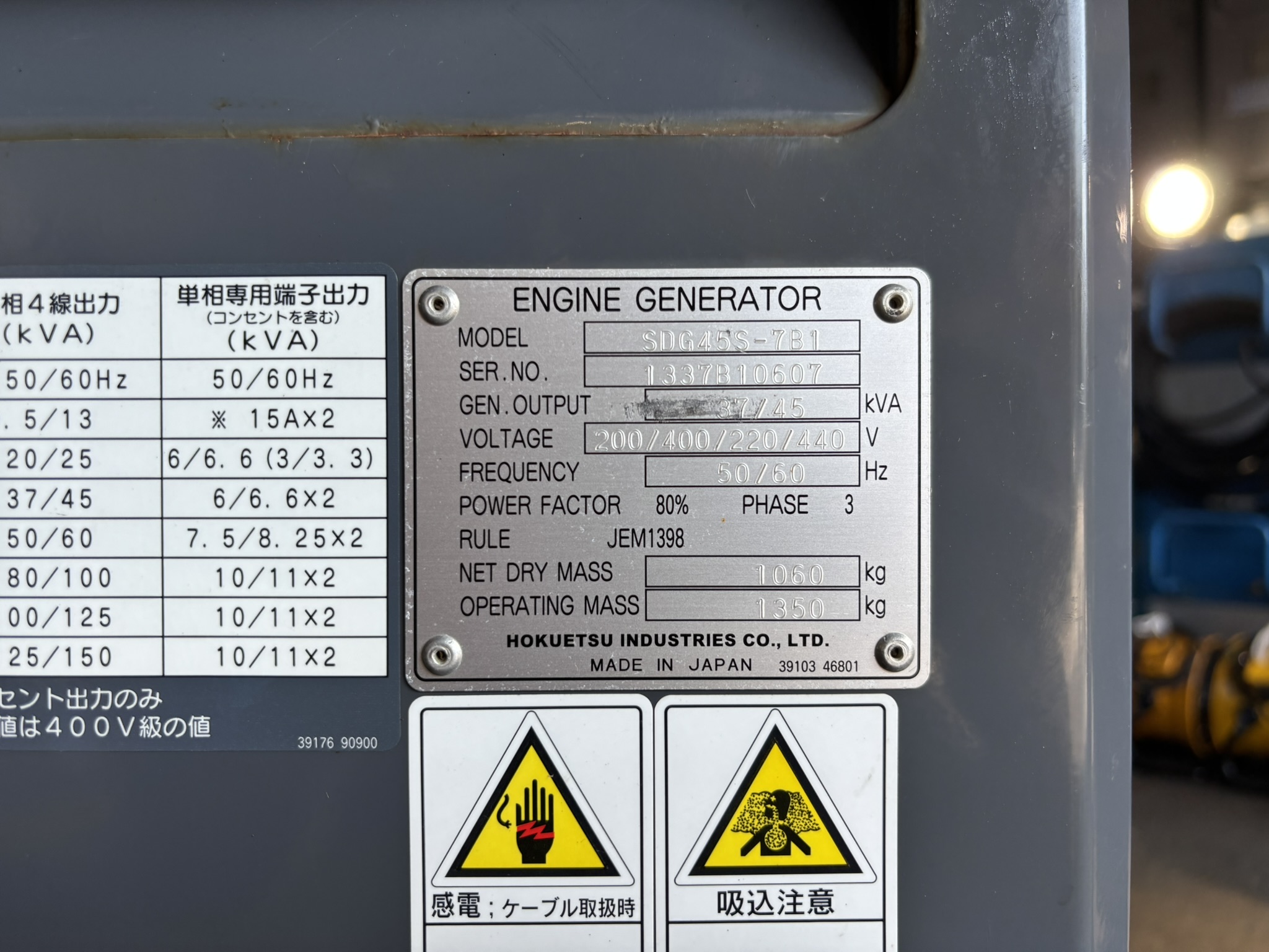 中古発電機 SDG45S-7B1 #178