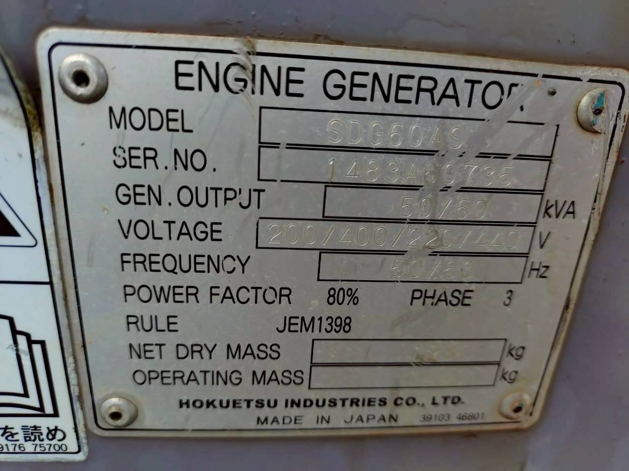 中古発電機 SDG60AS #193